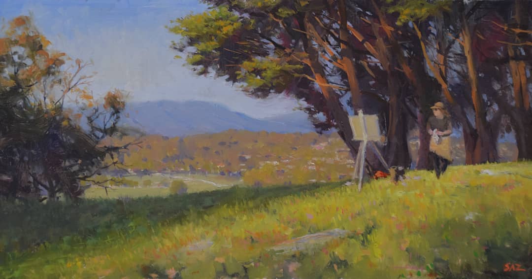 Finishing an afternoon painting in Woori Yallock. 8x16 oil on panel. $200