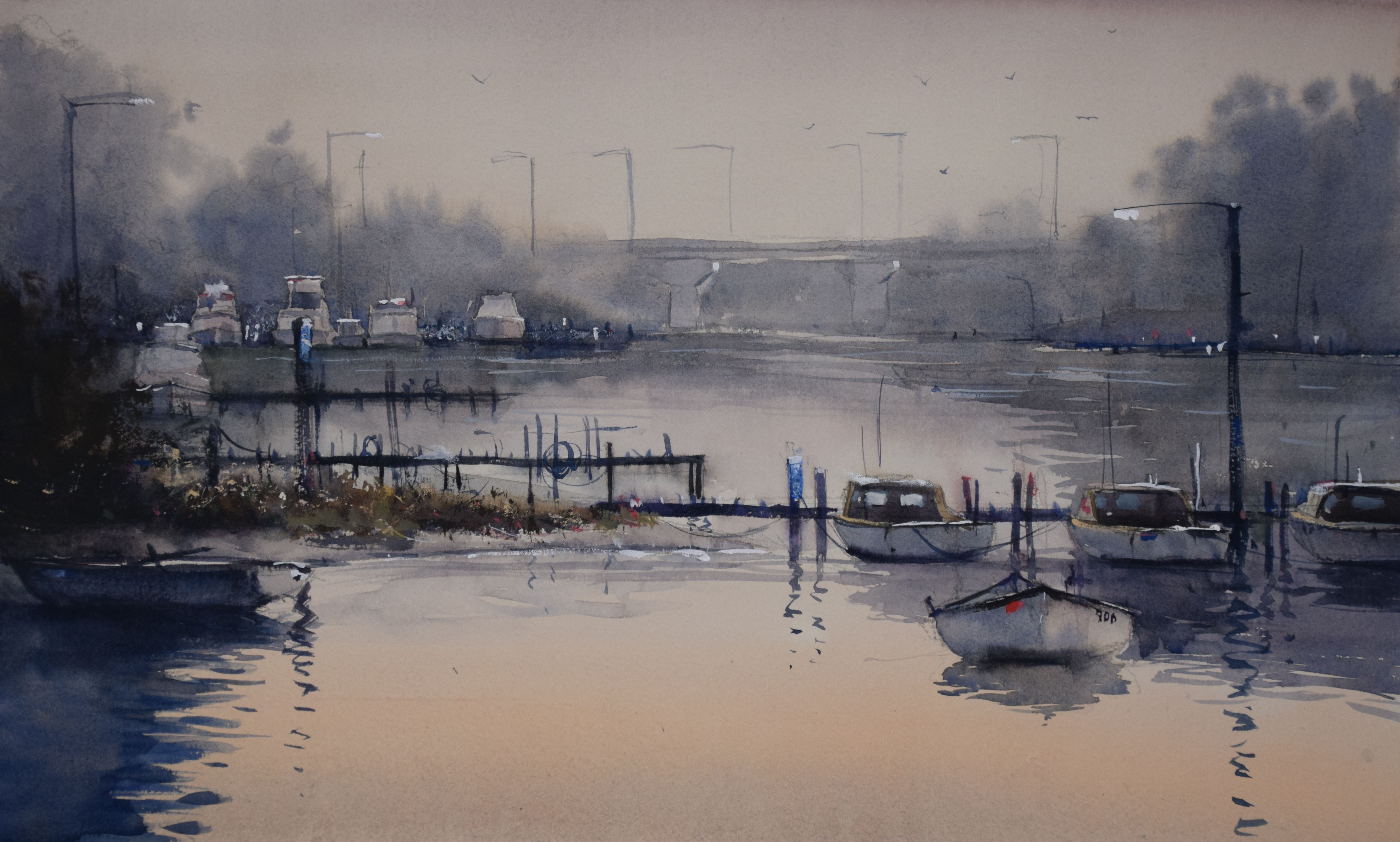 An evening at Lakes Entrance. Watercolour on 100% cotton paper. 75 X 58cm.