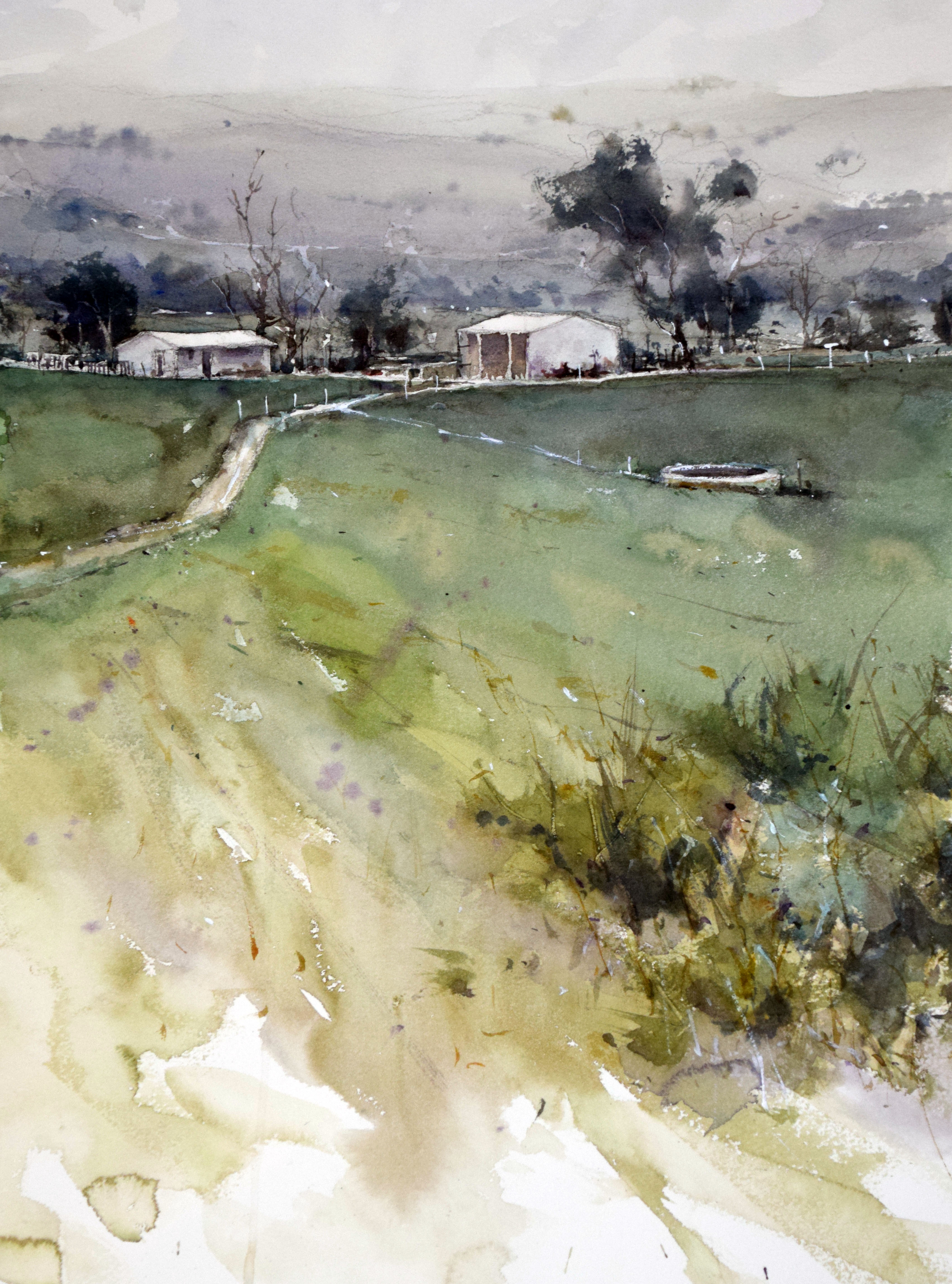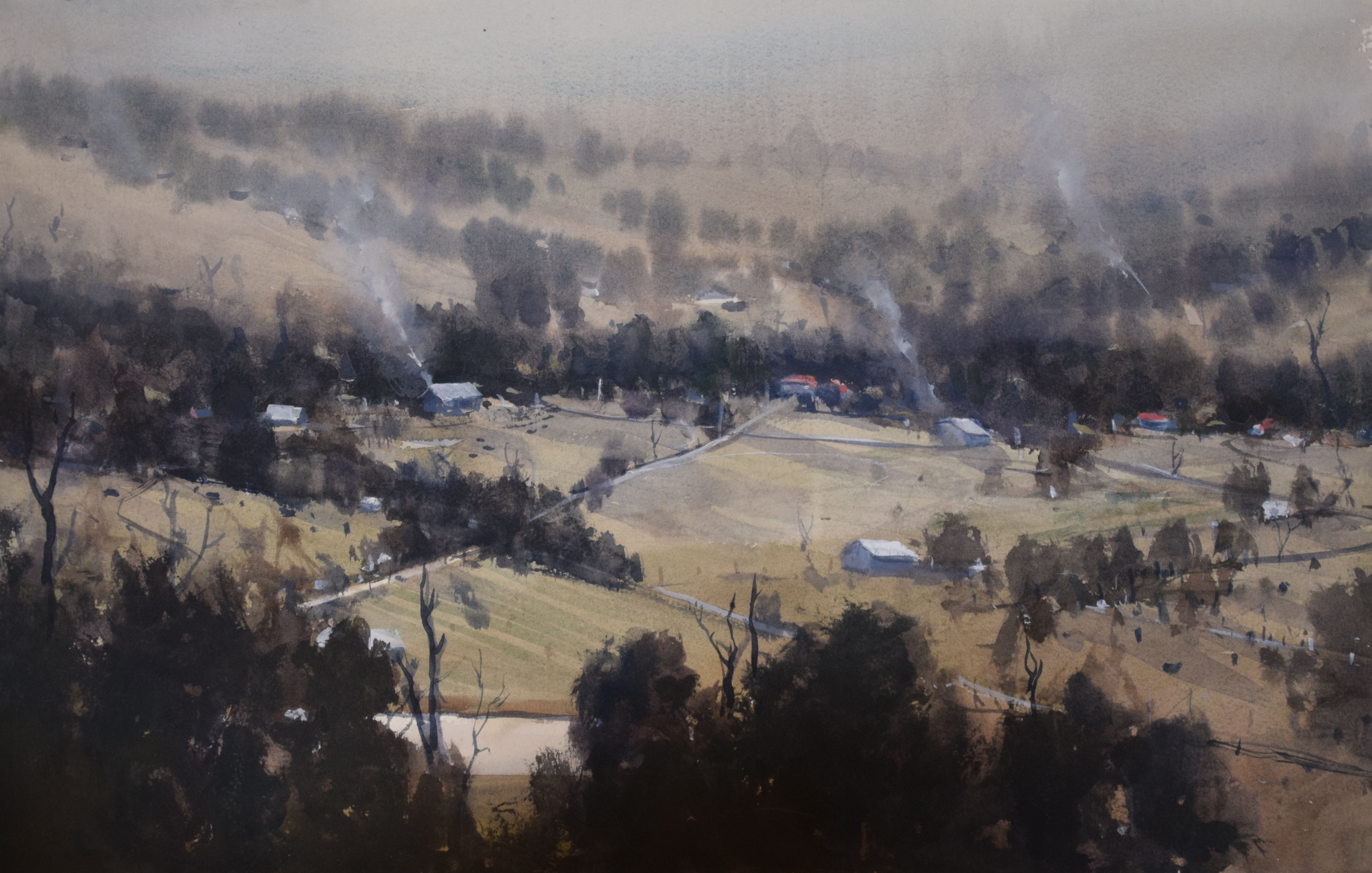 A misty day driving home from Yea. Watercolour on 100% cotton paper. 75 X 58cm.